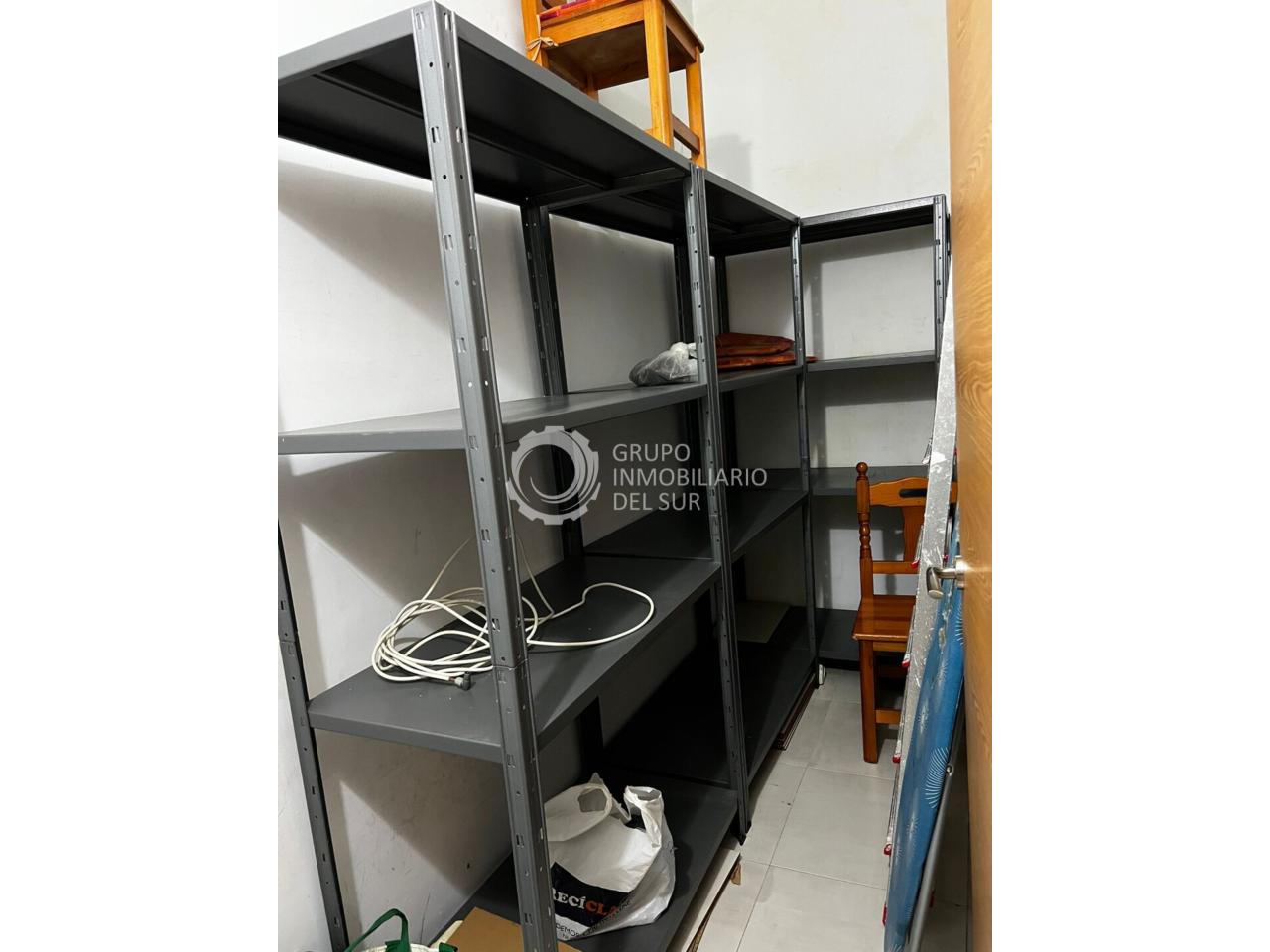 Dispone de trastero con estanterías metálicas y tendedero en la cocina, que da a un patinillo interior, aportando luz natural al baño, cocina y salón, todos ellos con amplios ventanales.