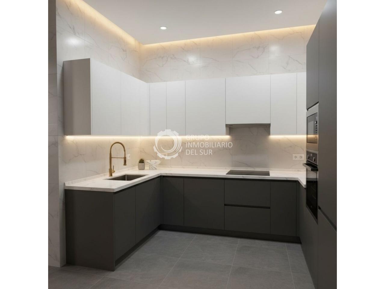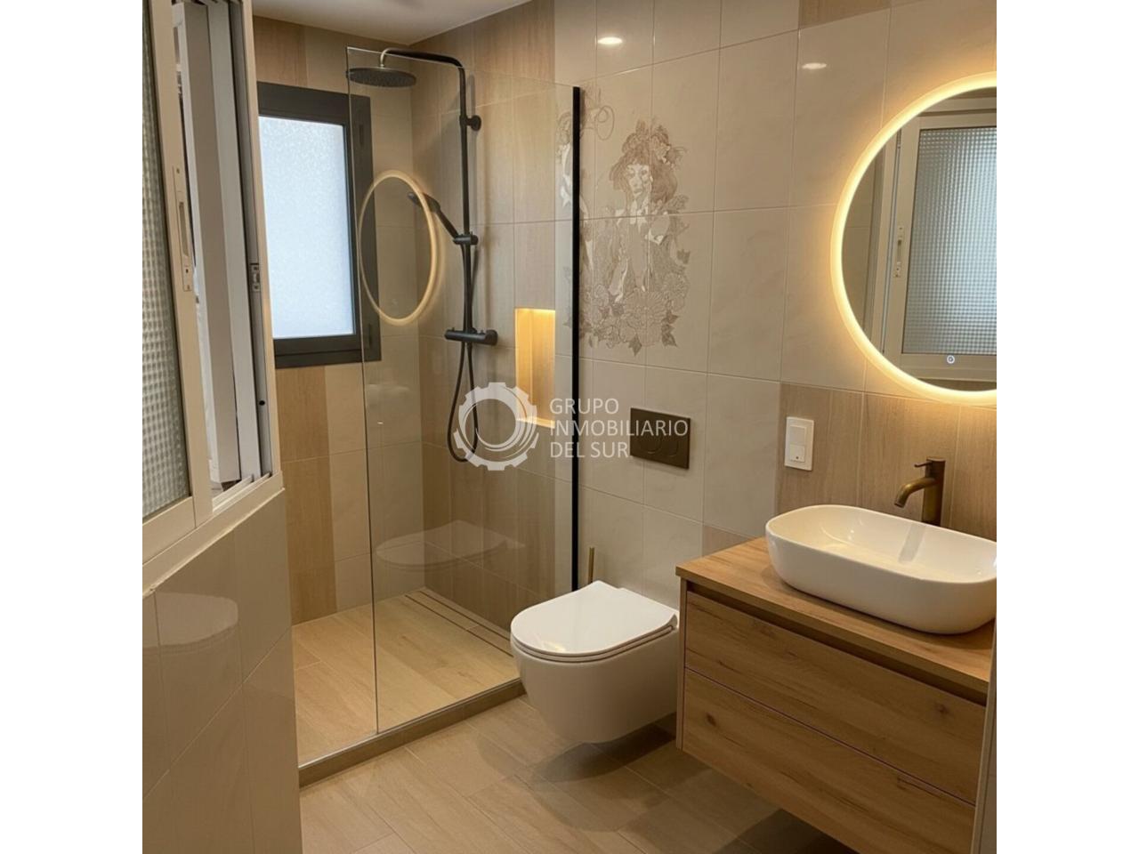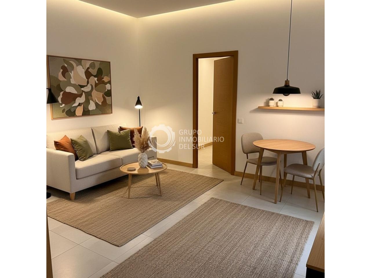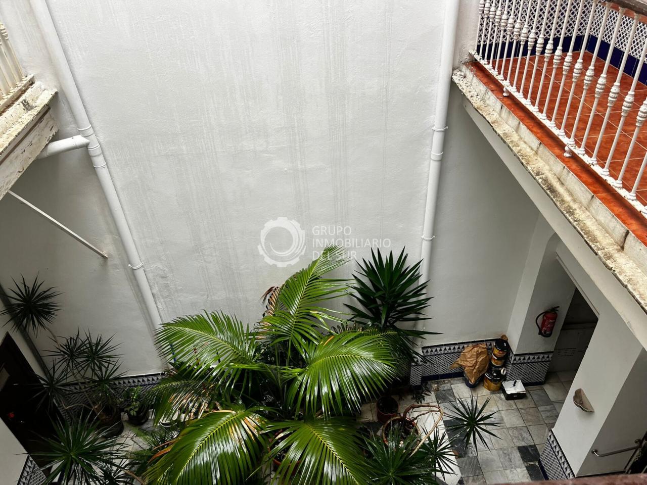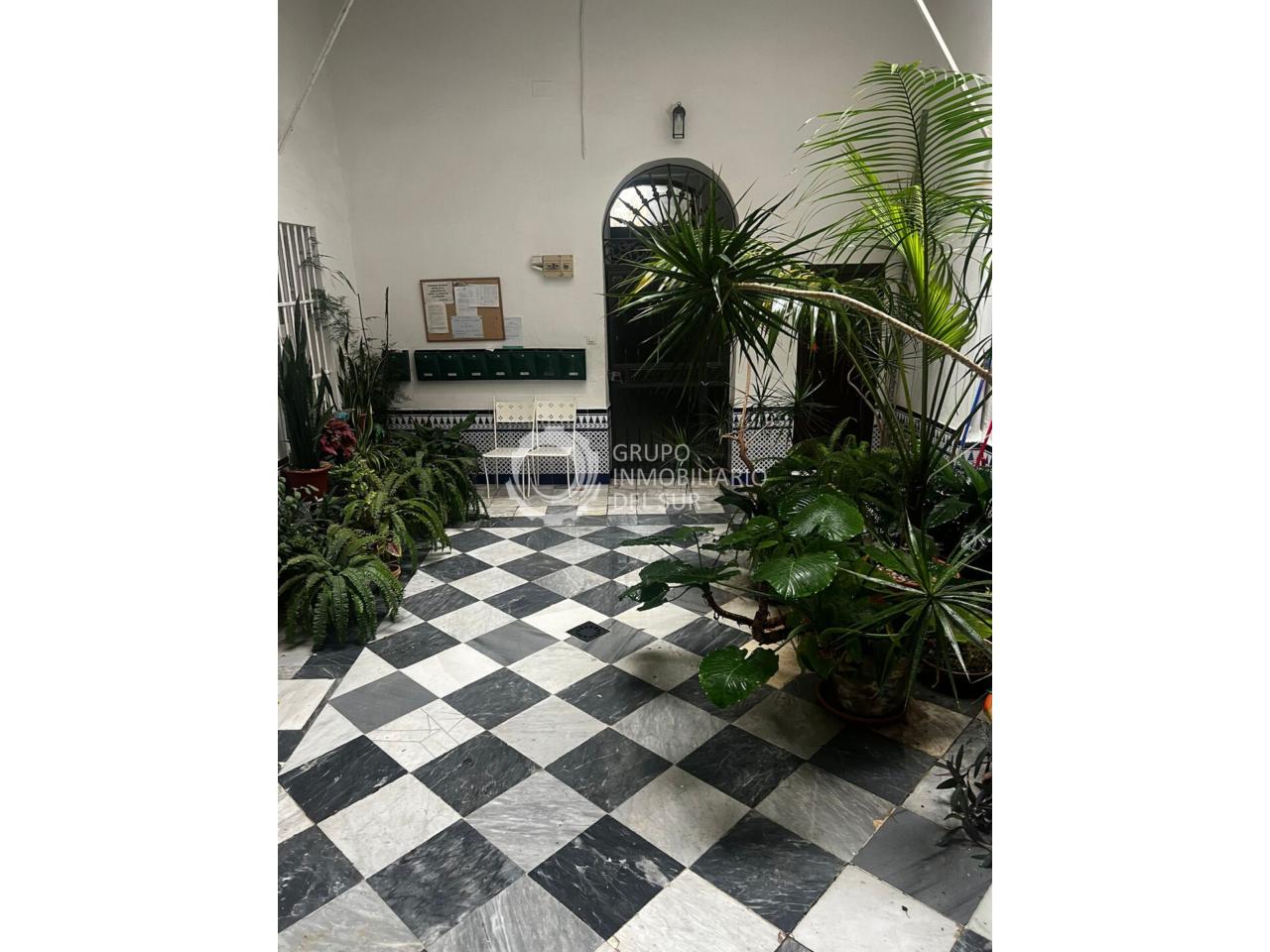 Acogedor piso de dos dormitorios, luminoso, con grandes ventanales hasta sus altos techos de mas de 3 metros, que se abren hacia un encantador patio andaluz.